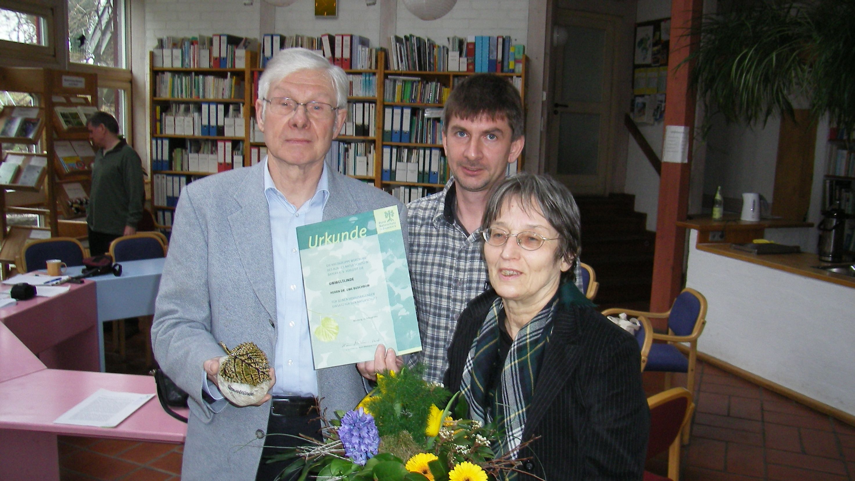 Die Kreisgruppe Würzburg des Bundes Naturschutz zeichnet Herrn Dr. Uwe Buschbom aufgrund seines großen Engagements für den Naturschutz mit der Umweltlinde aus.